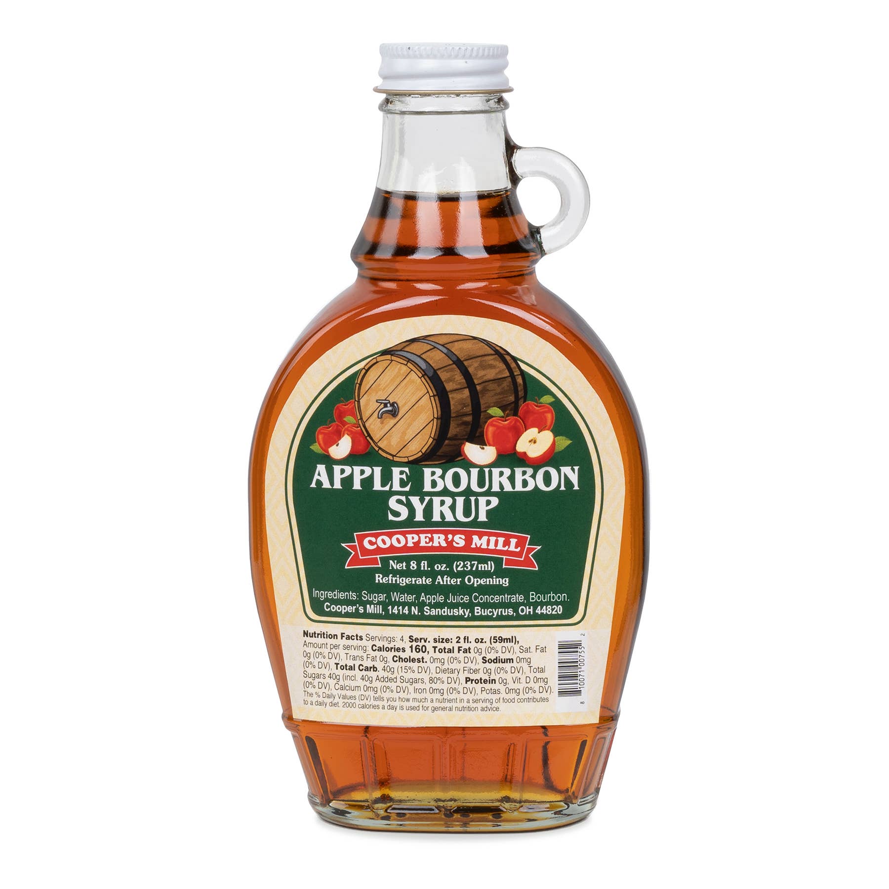 Made in Bucyrus, Ohio with pure cane sugar and all-natural ingredients, Cooper's Mill Fruit Syrups come in eight-ounce jars.
