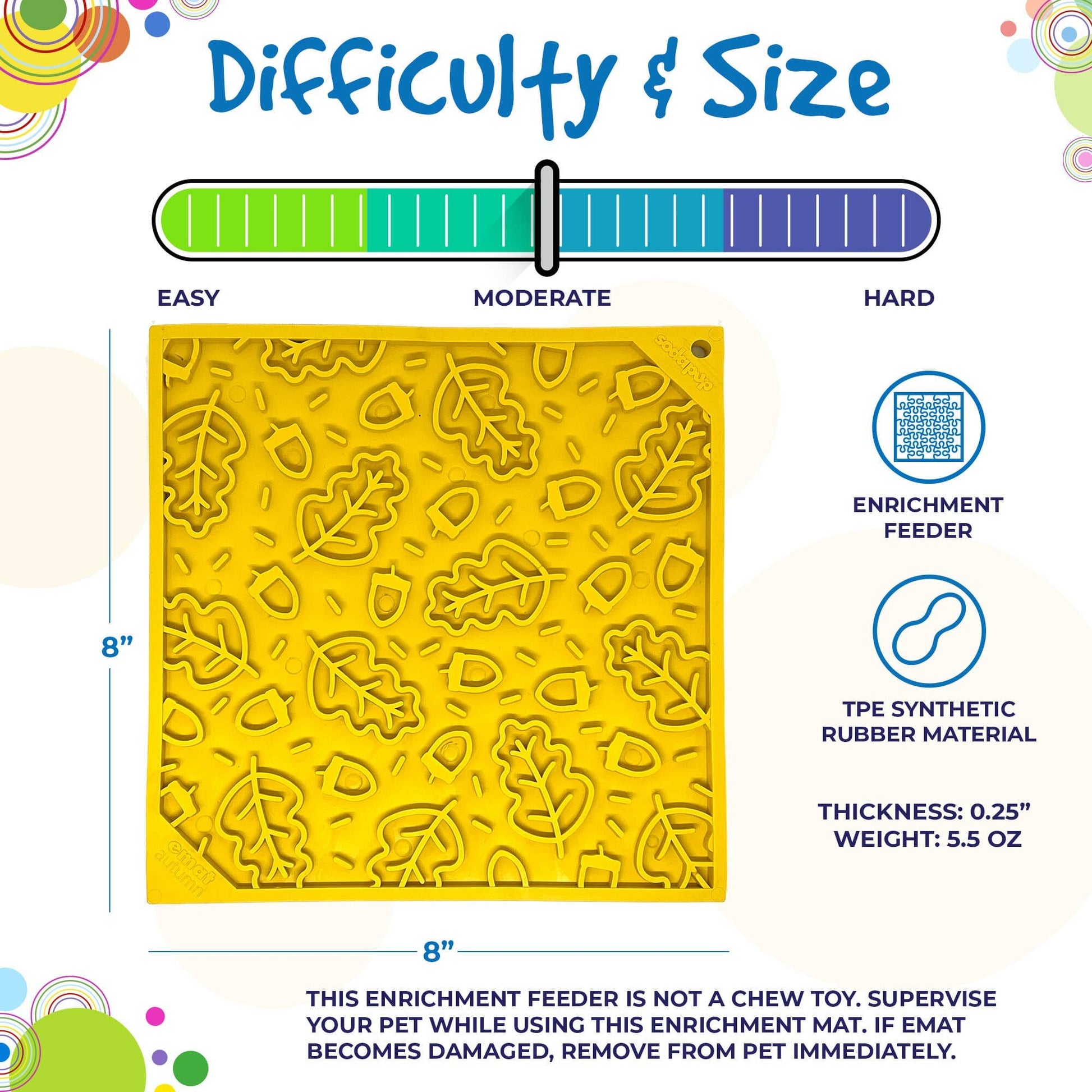 Welcome Fido to fall with the Autumn Design eMat Enrichment Lick Mat! Show your pup the beauty of the season with the orange and yellow of the foliage, while providing a one-of-a-kind licking challenge and soothing effect.