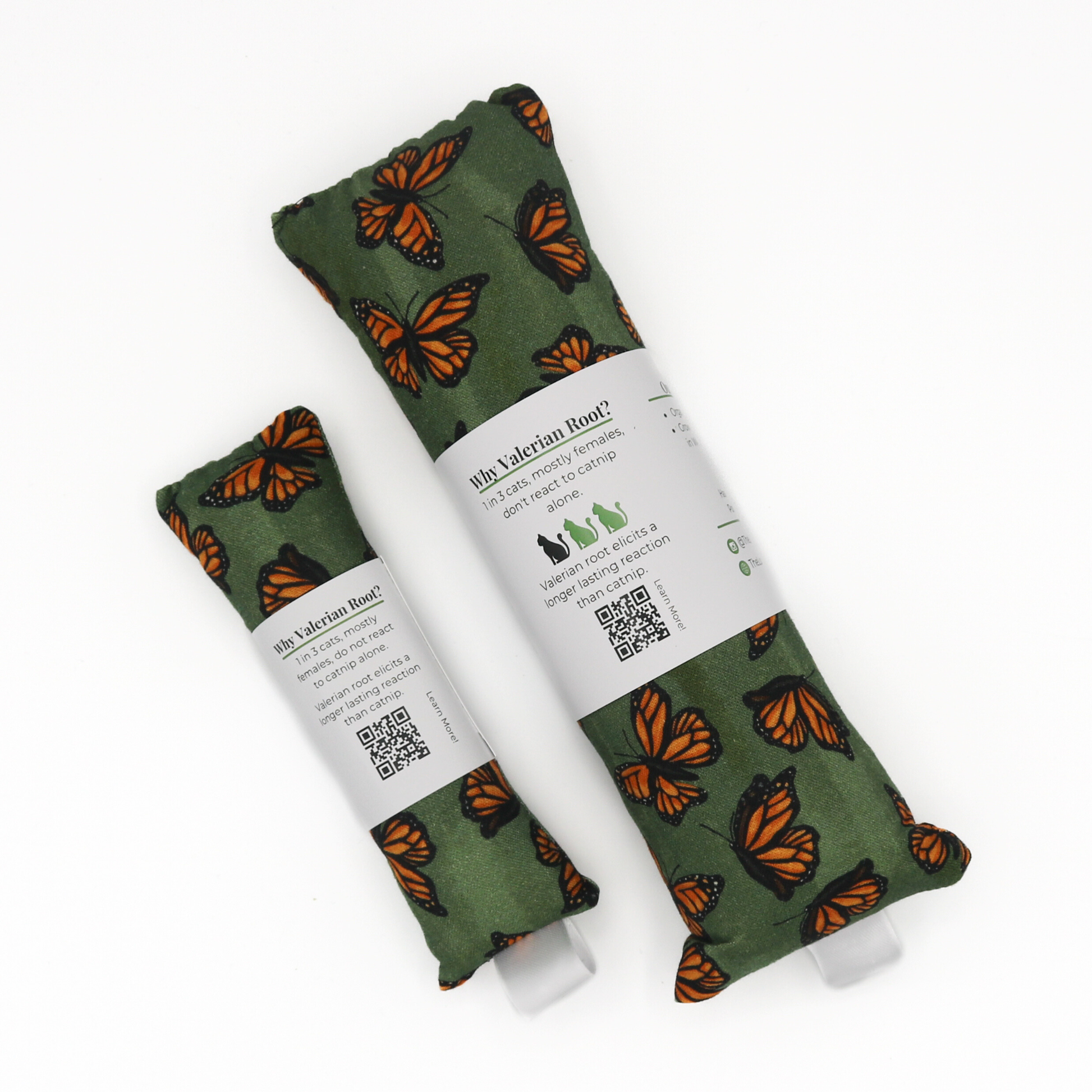Packed with organic catnip & valerian root, it's great for picky cats! Spring Monarch butterflies on green.