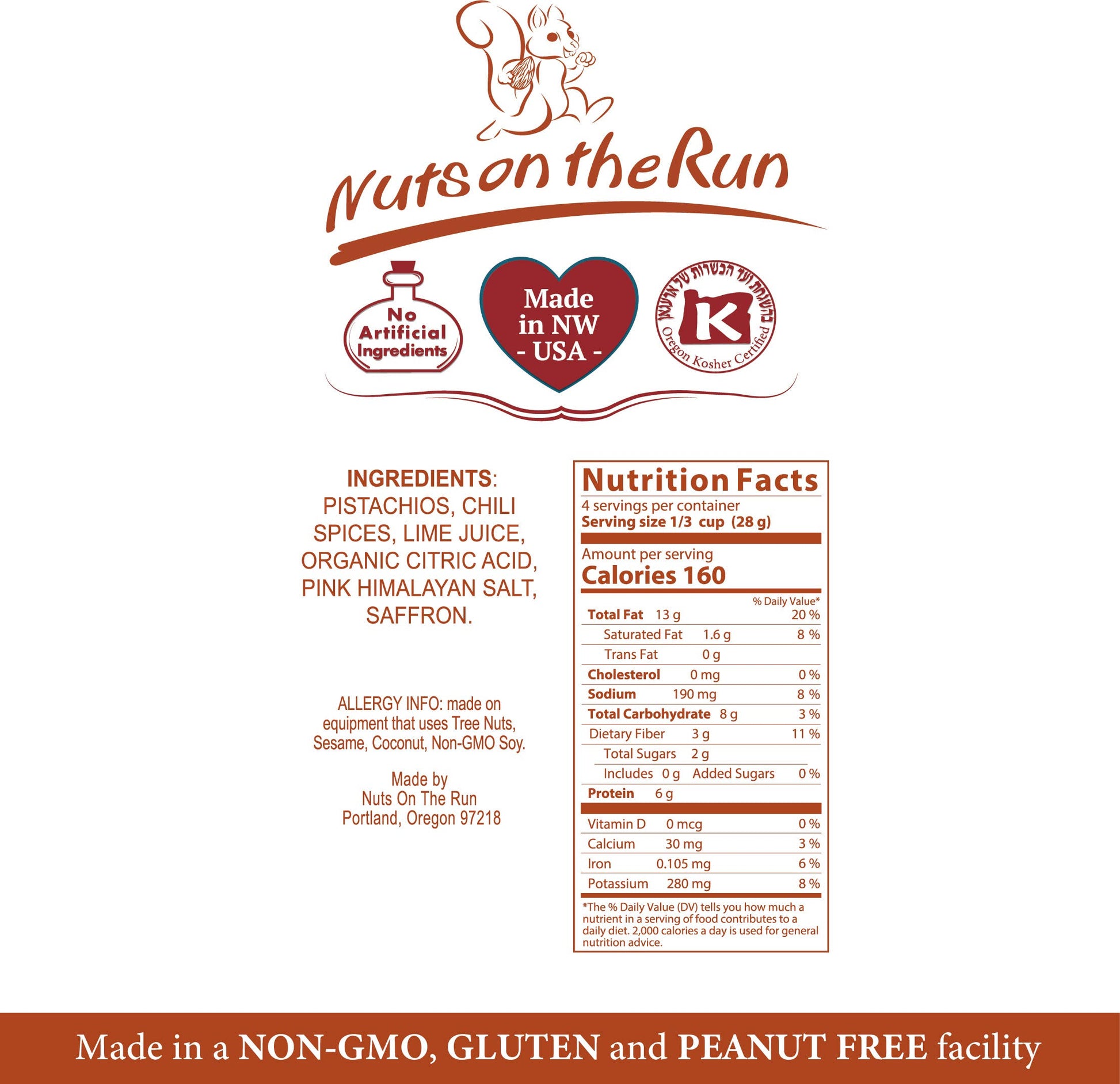 Our chili lime saffron pistachios are roasted with a carefully crafted blend of spicy and sour spices and combined with saffron to create a delicious and crunchy bite!