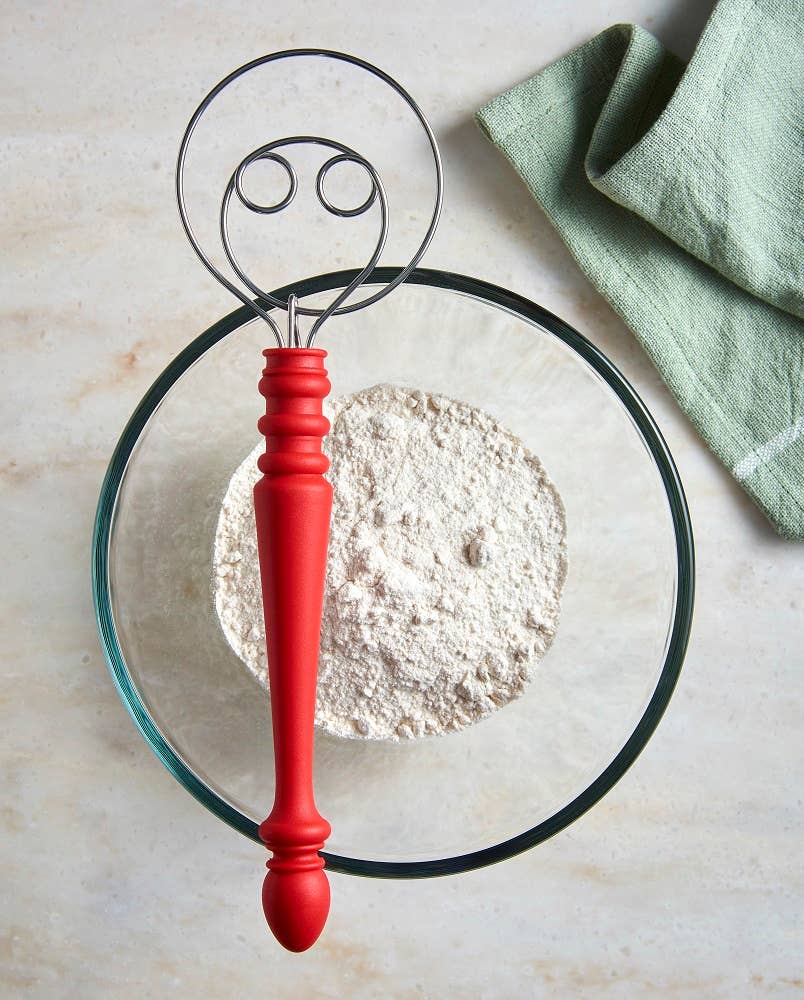 This versatile kitchen tool is perfect for mixing thick, sticky dough with ease. Its redesigned handle not only adds a contemporary touch but also enhances functionality. The whisk features three different sized coils that cut through dough without overmixing, ensuring smooth, clump-free results every time.