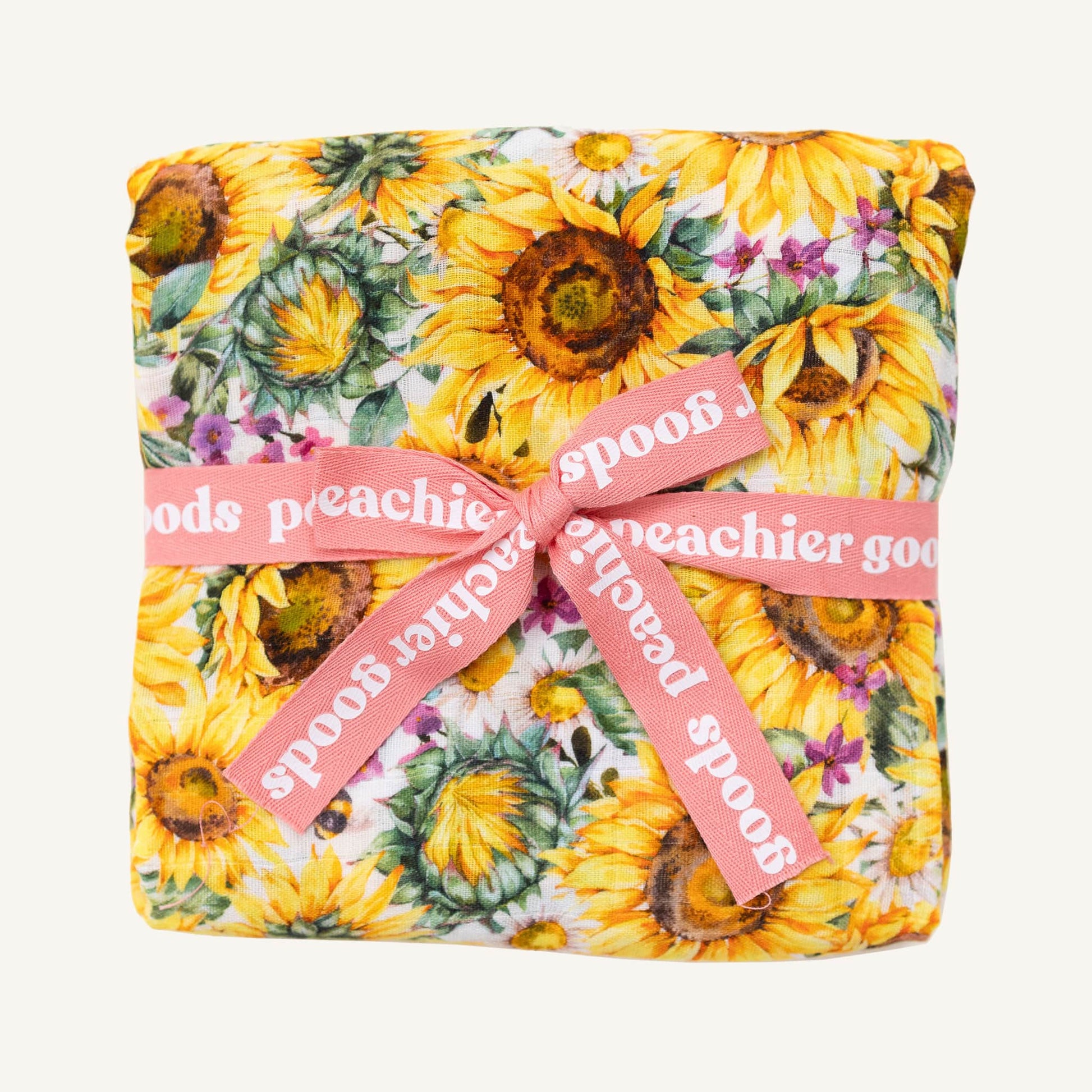 Goldie brings the radiant charm of sunflowers to your baby's world with its striking yellow-themed print, adding a touch of nature's beauty to swaddle time. Crafted for softness and style, it's the perfect choice to keep your little one cozy and adorned with the warmth of golden blooms.
