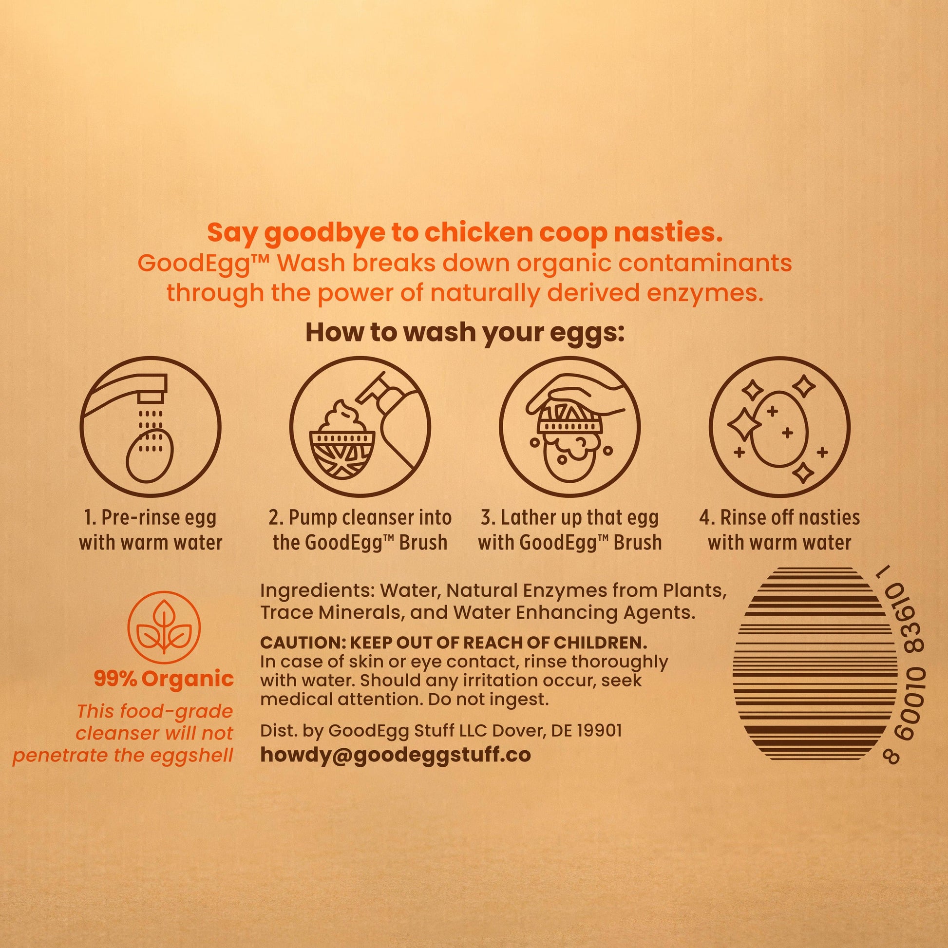GoodEgg Wash breaks down organic contaminants (including salmonella) through the power of naturally derived enzymes.