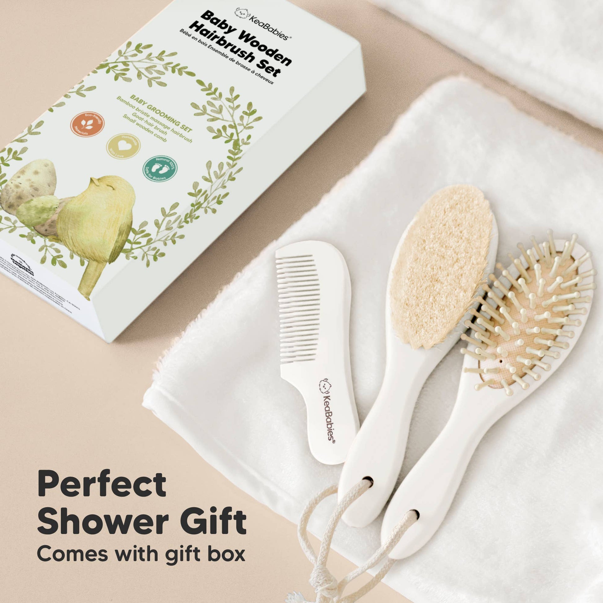 With KeaBabies Luxurious Hairbrush Set, your baby will enjoy the most comfortable daily hair grooming. Let us be with you through this precious bonding and loving moment.
