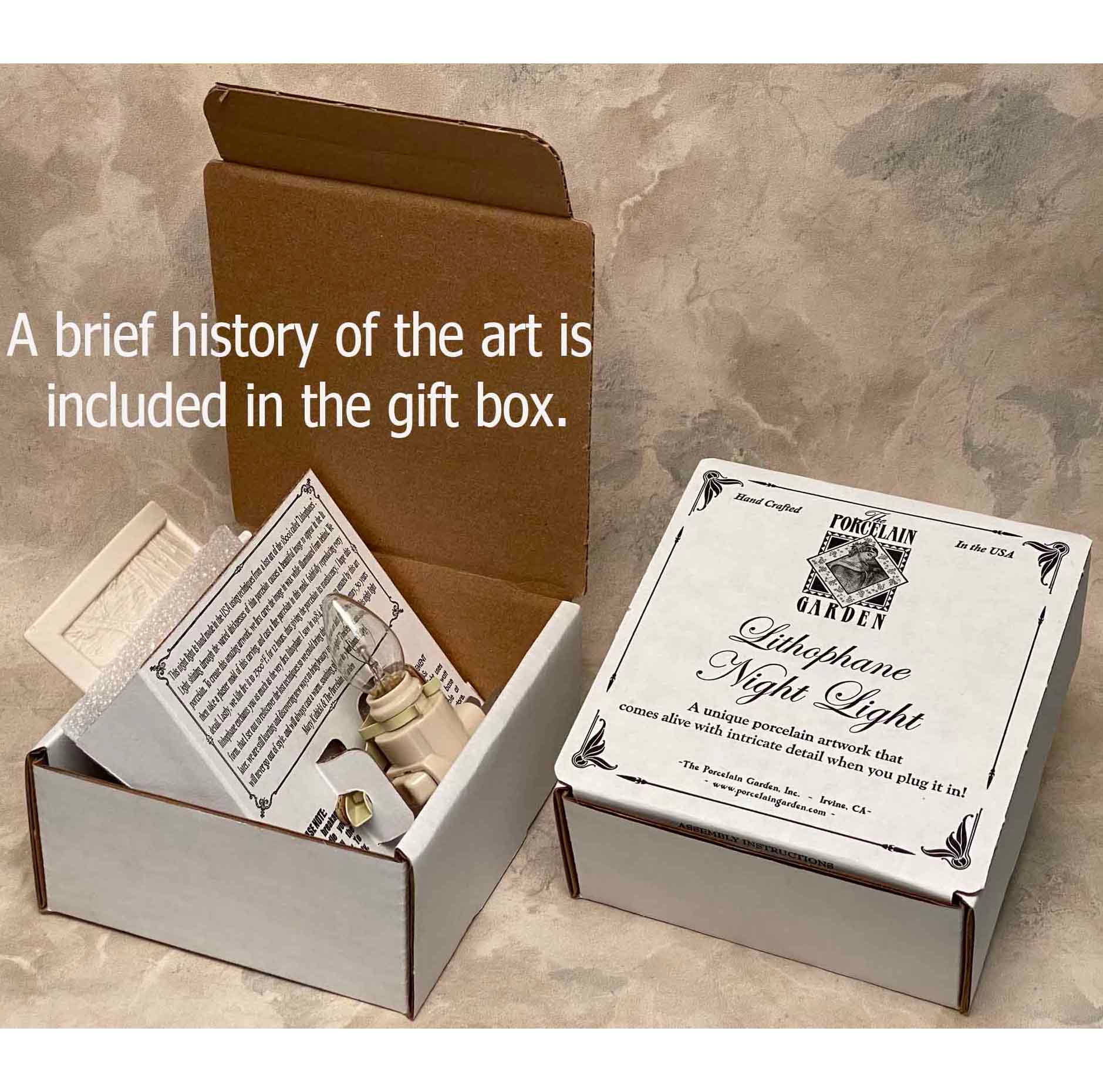 This is a porcelain lithophane night light. Light shining through different thicknesses of porcelain creates this highly detailed image; it is not a photo. It comes from an original engraving in wax, and they cast kiln fired porcelain into a mold made from the original carving.