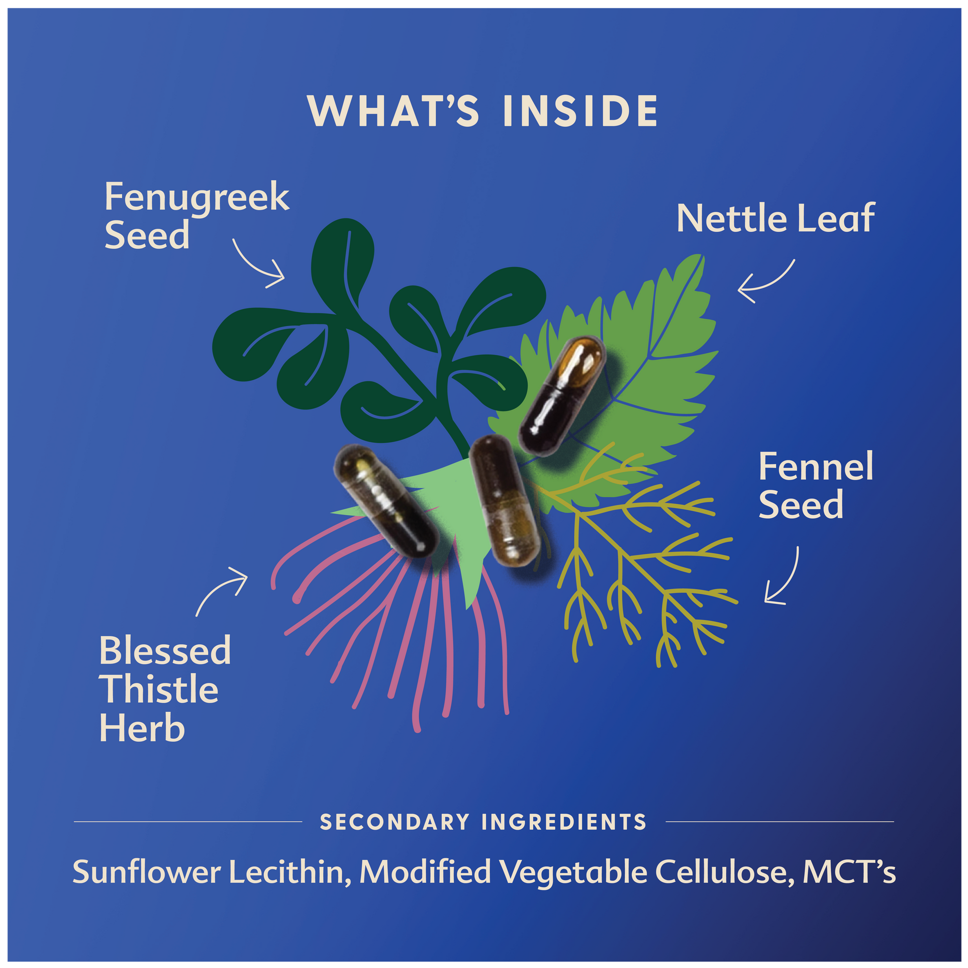 This fenugreek-based lactation supplement is a blend of four organic herbs that work as hard as you do—fenugreek, blessed thistle, nettle, and fennel.