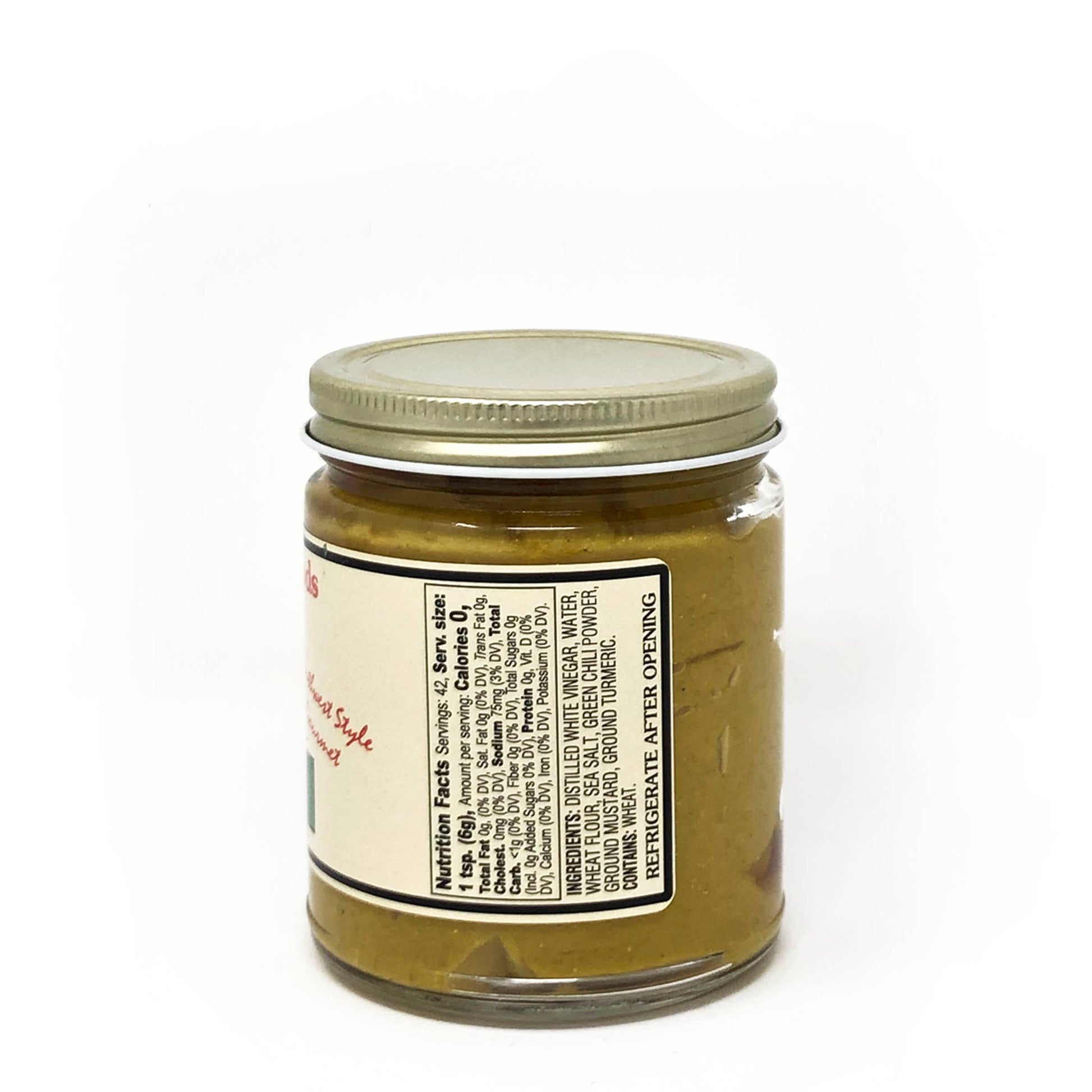 A very delightful spicy mustard considered a universal or all-purpose mustard, great in dips, sauces, on fish or meats, with the authentic green chile flavor that compliments most gourmet meals.