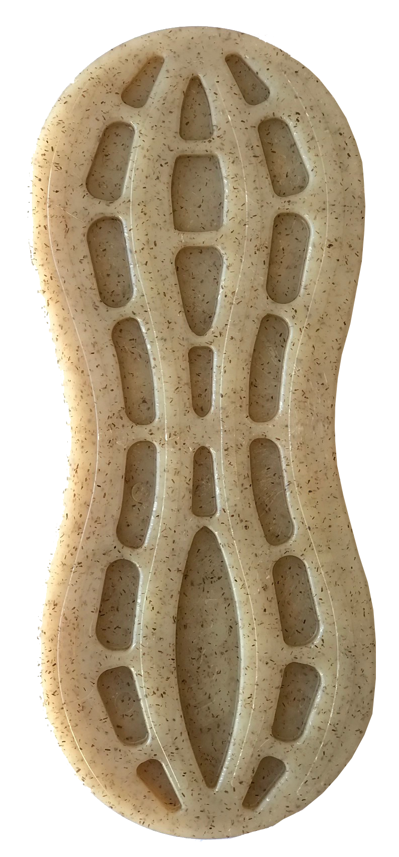 POWER CHEWERS: A peanut that dispenses peanut butter! Spread peanut butter into the holes on this durable nylon toy to give your dog a fun and rewarding challenge. This ultra-durable nylon toy in the shape of a peanut is designed and built to withstand even the most aggressive chewers. This toy helps keep your dog entertained and solves problem chewing behaviors. Made from an innovative nylon and wood composite material.