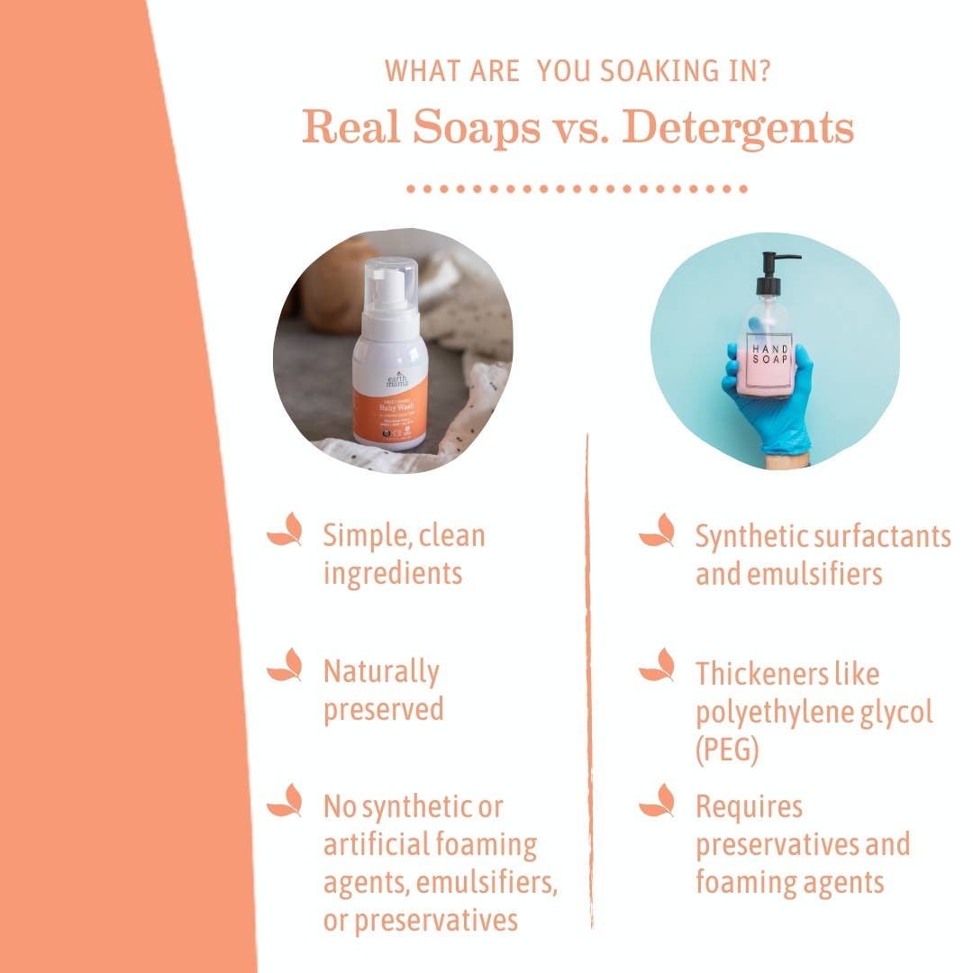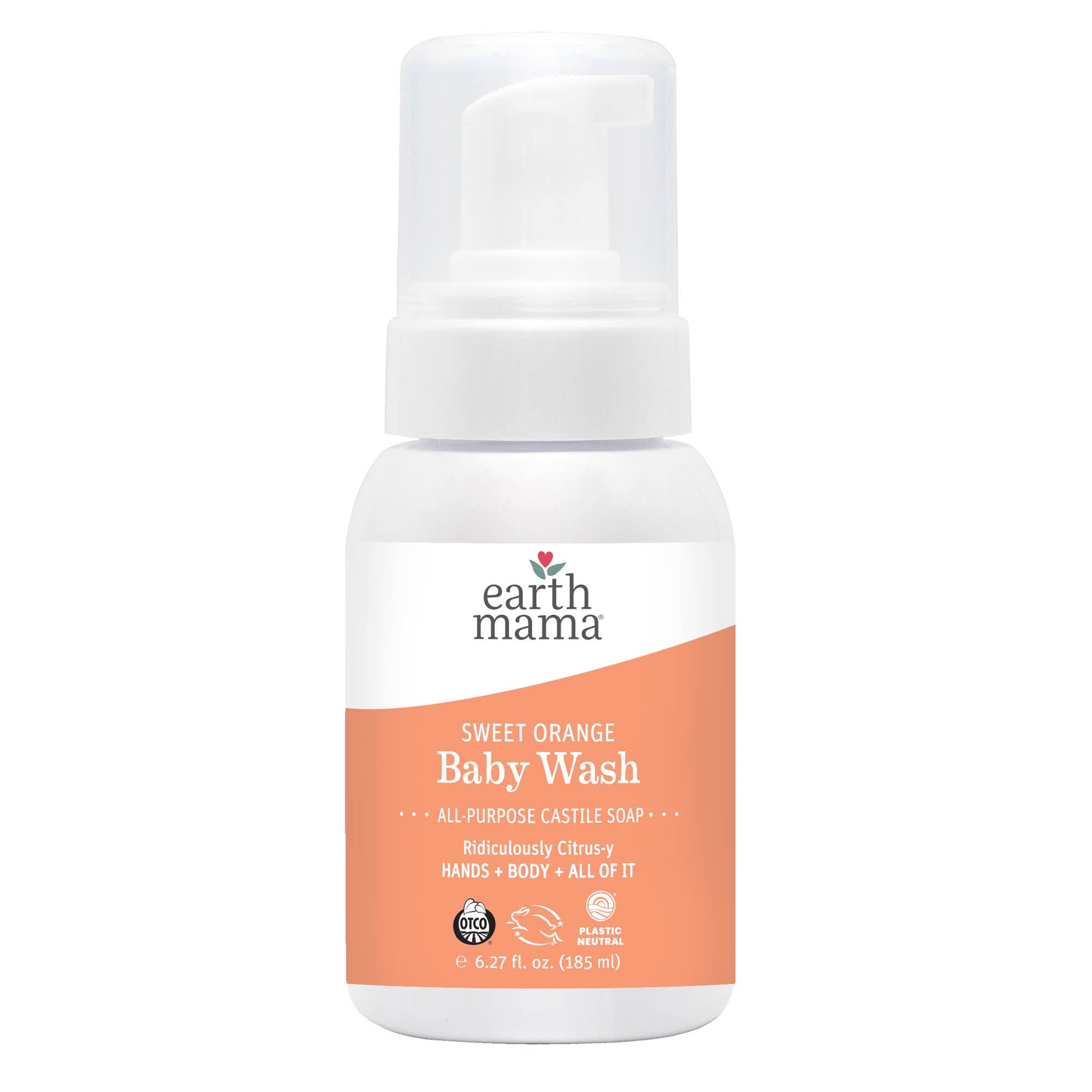 Earth Mama’s Sweet Orange Baby Wash is a castile-based orange vanilla soap made with organic herbs and oils.