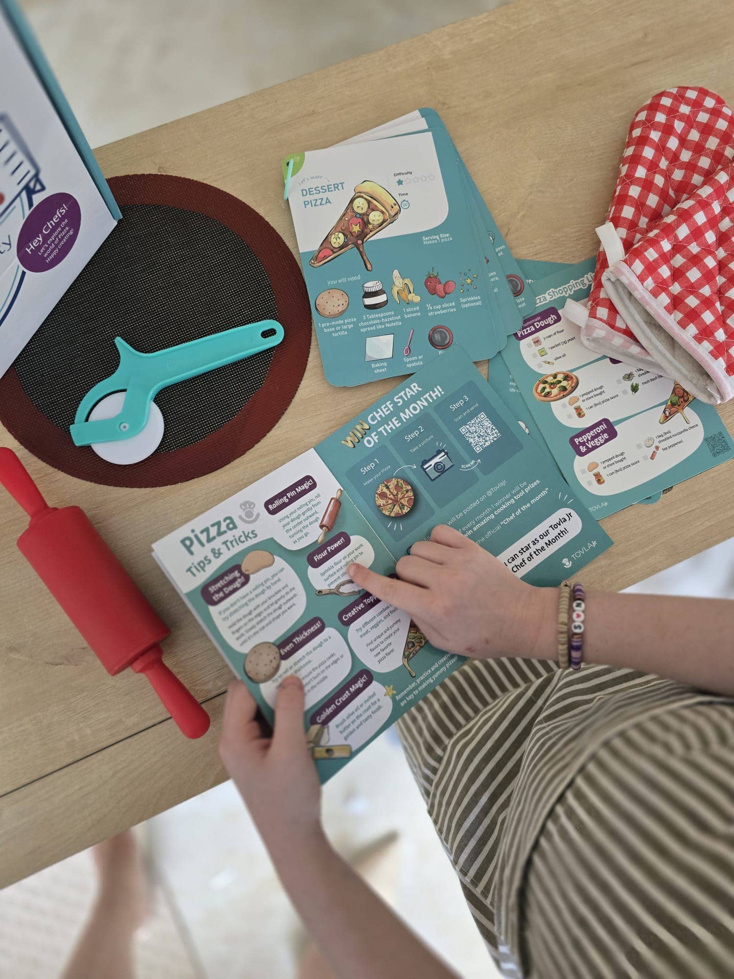 Why Choose the Tovla Jr. Pizza-Making Kit? * Kid-Sized, Real Cooking Tools: Includes all the essentials for real pizza-making, making kids feel like true chefs in the kitchen. * Easy-to-Follow Visual Guides: Step-by-step recipe cards ensure kids can confidently follow along and enjoy the cooking process.